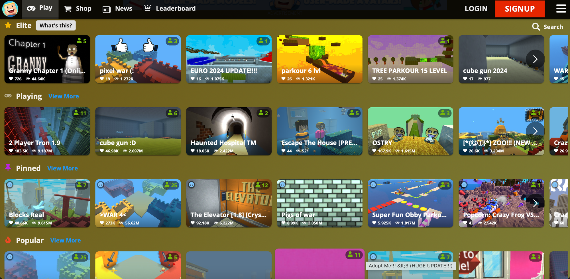 KoGaMa has a stronger focus on 3D block-based building and offers a web browser version, making it more accessible on various devices. Players do not have to install a special client to be able to play games created for KoGaMa.